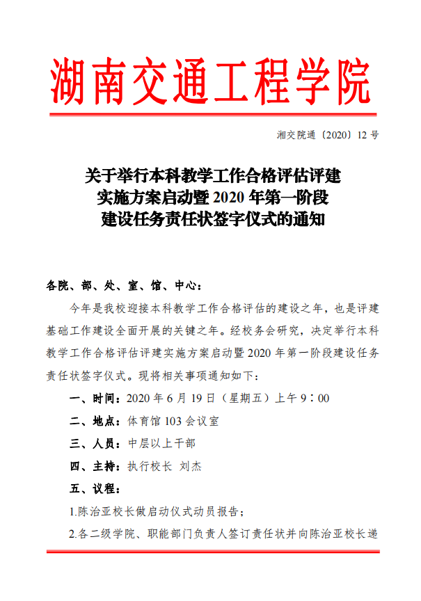 关于举行本科教学工作合格评估评建实施方案启动暨2020年第一阶段建设任务责任状签字仪式的通知