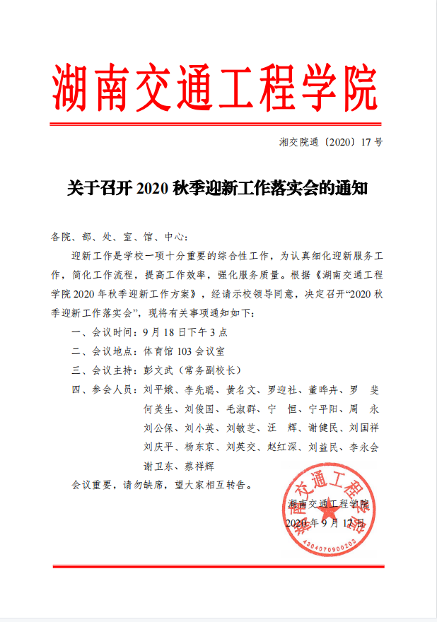 关于召开2020秋季迎新工作落实会的通知