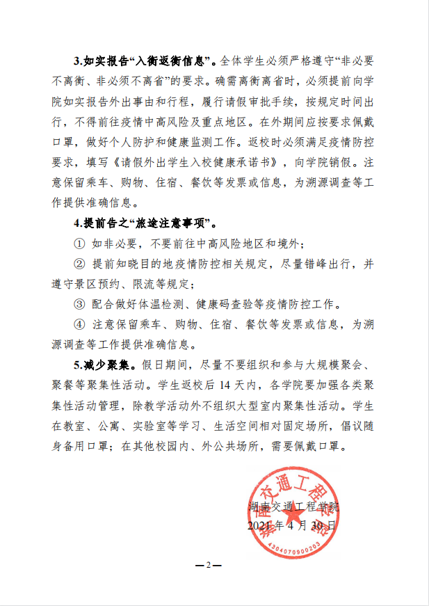 关于做好“五一”前后常态化疫情防控学生管理工作的通知
