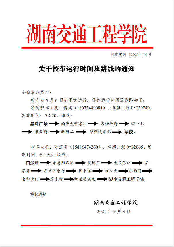 关于校车运行时间及路线的通知