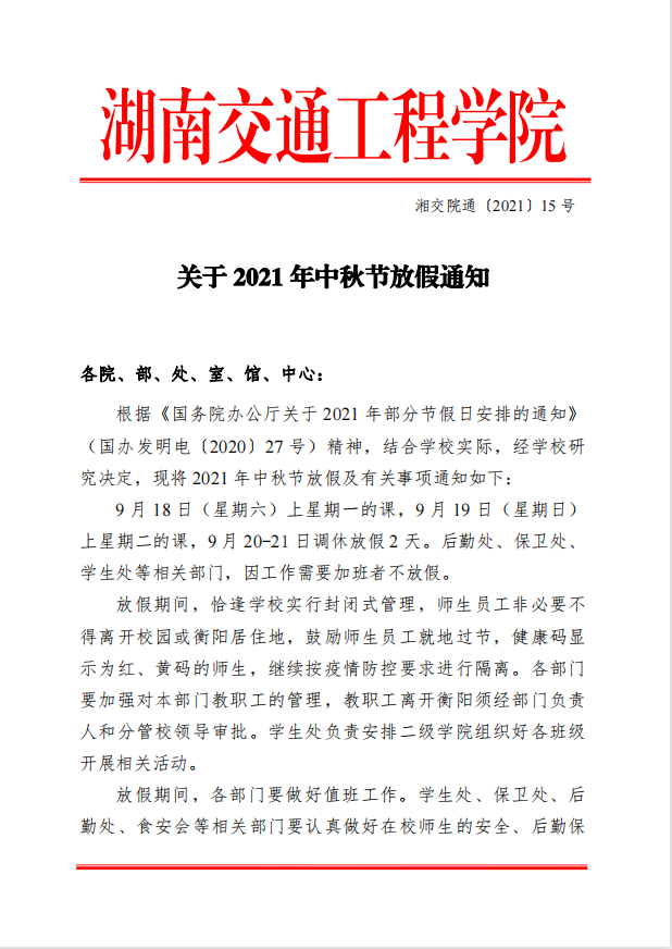 关于2021年中秋节放假通知