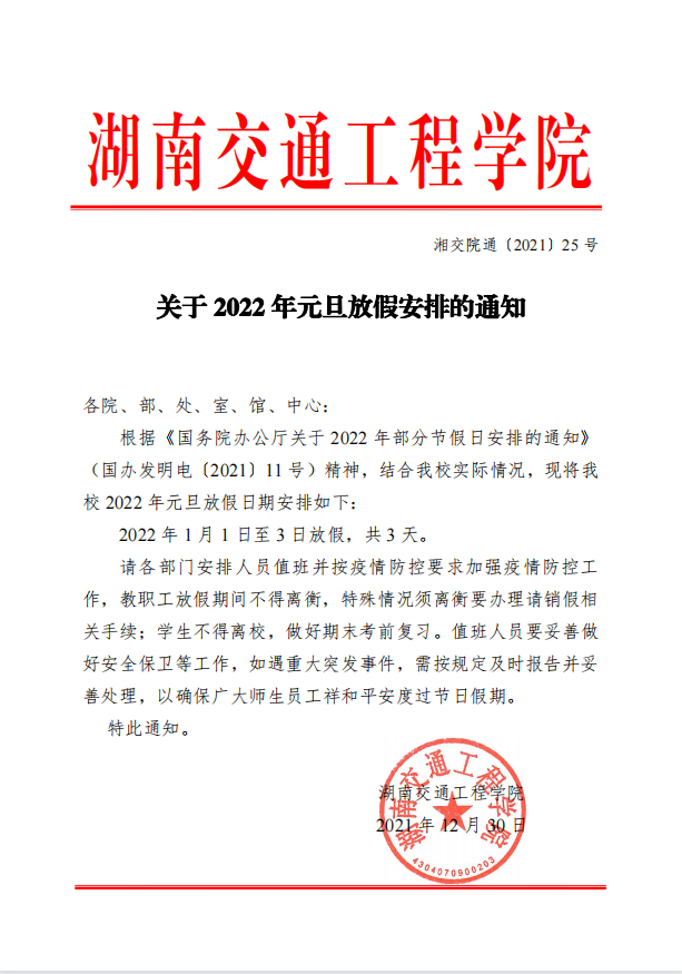 关于2022年元旦放假安排的通知