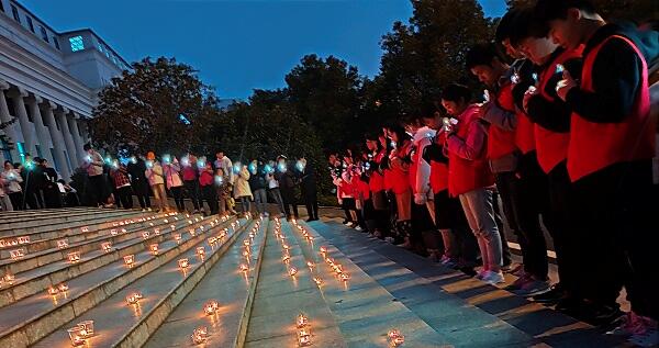 本网讯(通讯员刘攀 记者李建华)在第32个世界艾滋病日到来之际,11月29日晚,beat365唯一官方网站大学生举办为“艾”发光活动,用烛光点亮“NO AIDS”和红丝带的字样和图案,呼吁广大青年知艾防艾,共享健康。
