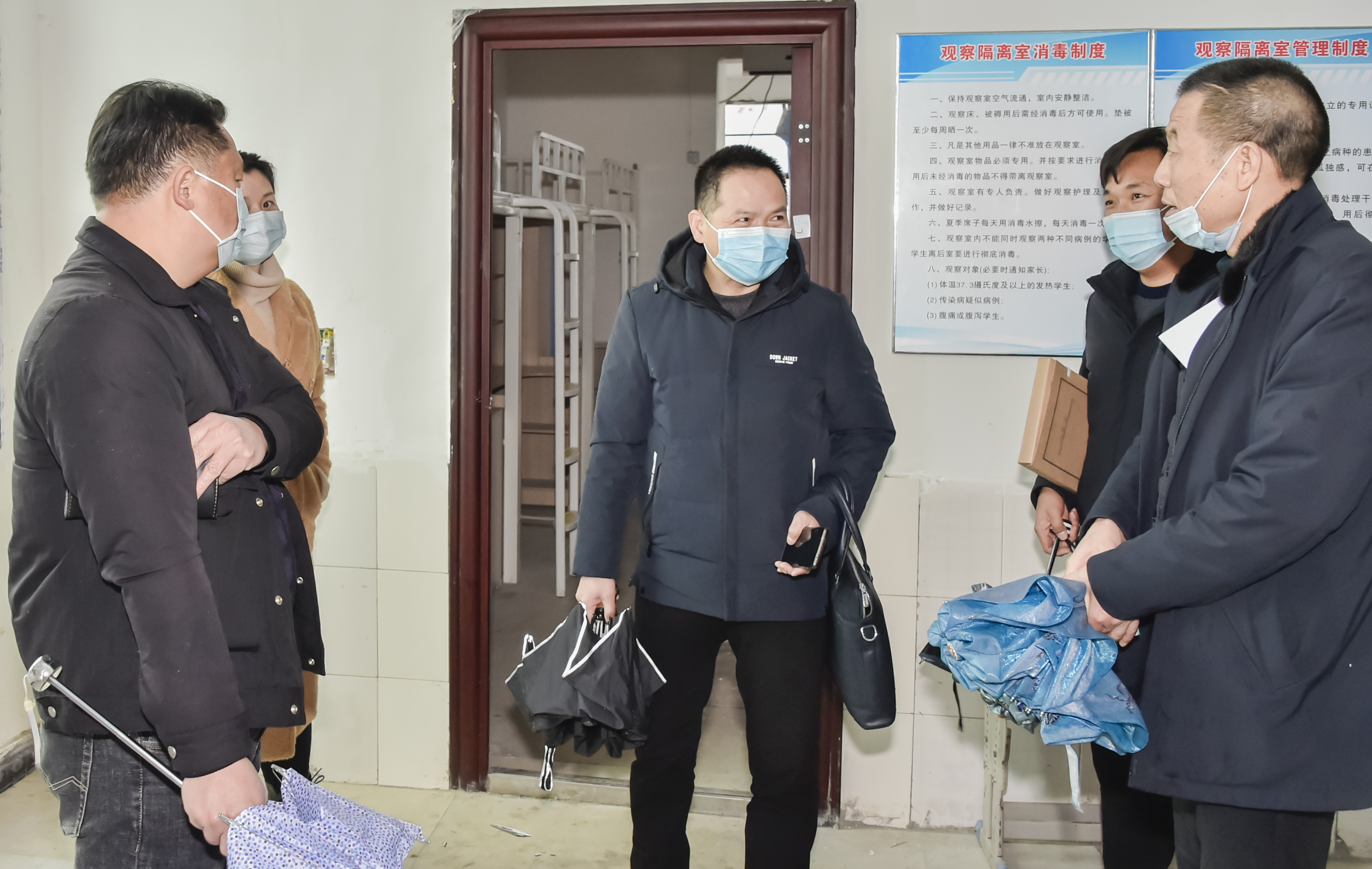 本网讯(记者 赵红深 摄影 李建华)根据省教育厅《关于进一步完善全省学校疫情防控督查工作机制的通知》要求,2月13日上午,省疫情防控督查高校互查第十一督查组南华大学党政办主任陈柒叁、保卫处副处长吴莎丽、后勤处副处长全小青一行到beat365检查督导疫情防控和开学返校各项准备工作。校长陈治亚、党委书记刘文君接待了督查互查组,常务副校长彭文武、副校长余孟辉,党政办、学生处、校团委、后勤处、保卫处、宣传部等部门负责人陪同检查。