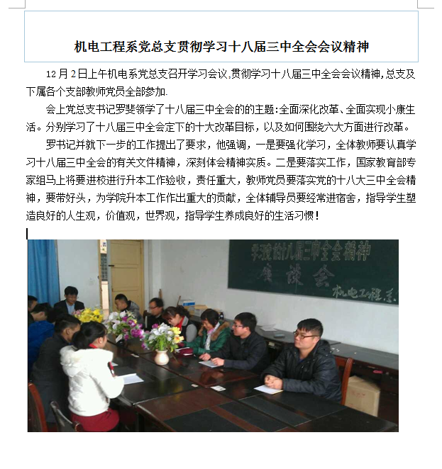 机电工程系党总支贯彻学习十八届三中全会会议精神