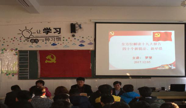 召开专题会议、组织宣讲、展开讨论交流、举办主题活动……十九大后,我院将十九大精神融入教育教学全过程,作为大学生思想政治教育的重要内容,把开展十九大学习教育活动与实施综合素质提升工程、学风建设工程和党员先锋工程结合起来,从学院到各班级,从党支部到团支部,从学生党员到普通学生,大家深入学习领悟十九大精神,迅速掀起十九大精神进校园的热潮,青年学子的学习热情持续高涨。
