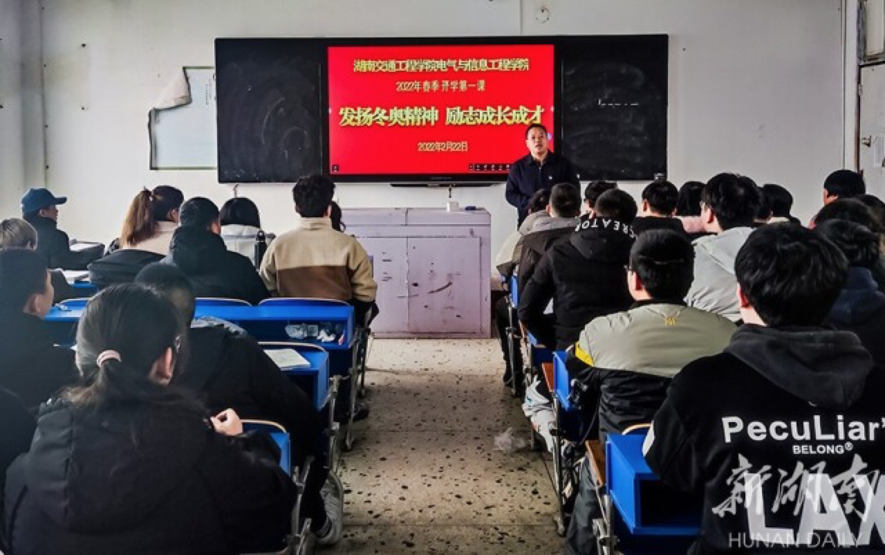 课堂上,该校各学院书记生动讲述了年仅18岁的中国选手谷爱凌首战冬奥用超高难度动作奋勇拼搏,最终挂冠而归,荣获大跳台和U型场地两项冠军,成为中国雪上项目冬奥史上的MVP,迎来挑战极限竞技的高光时刻。讲课中,各二级学院紧扣“冬奥主题”,通过介绍冬奥冠军、讲解冬奥知识、阐释冬奥格言、讲述夺冠故事等内容,让大学生们感受国家的强大、科技的先进、拚搏的收获,学习奥运健儿坚韧不拔、永不言败的精神,努力备战新学期。