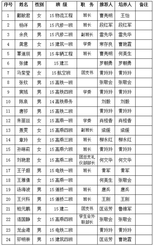 中共交通工程系党总支 2016下半年确定发展对象公示