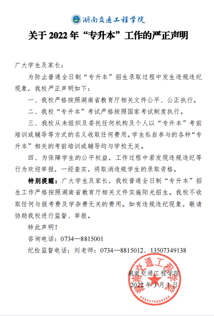 beat365唯一官方网站关于2022年“专升本”工作的严正声明