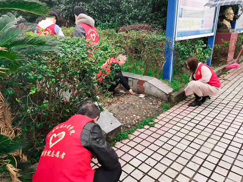 学校各二级学院志愿者们自发开展公益清扫活动,他们用自己的行动践行雷锋精神。
