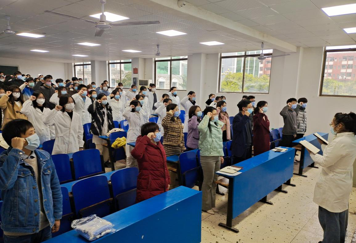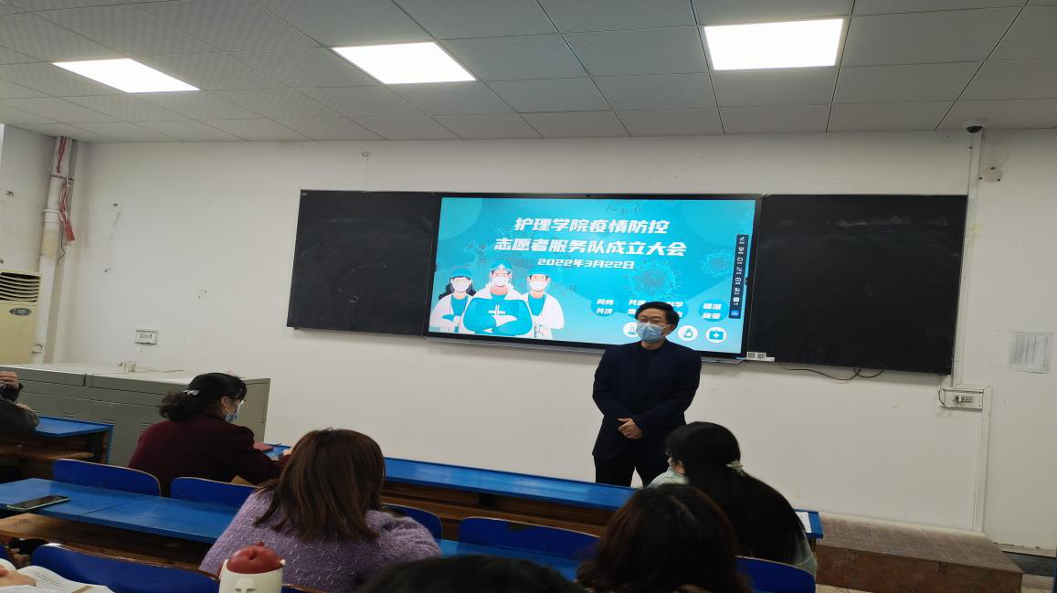 面对当前复杂严峻的疫情形势,3月22日,护理学院在102教室举行“疫情防控志愿者服务队”成立大会。