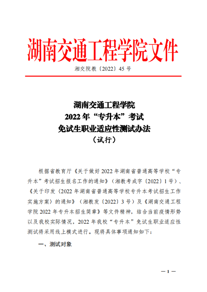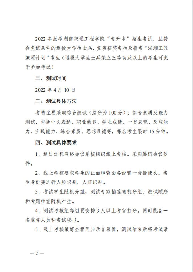 beat365唯一官方网站2022年“专升本”考试免试生职业适应性测试办法