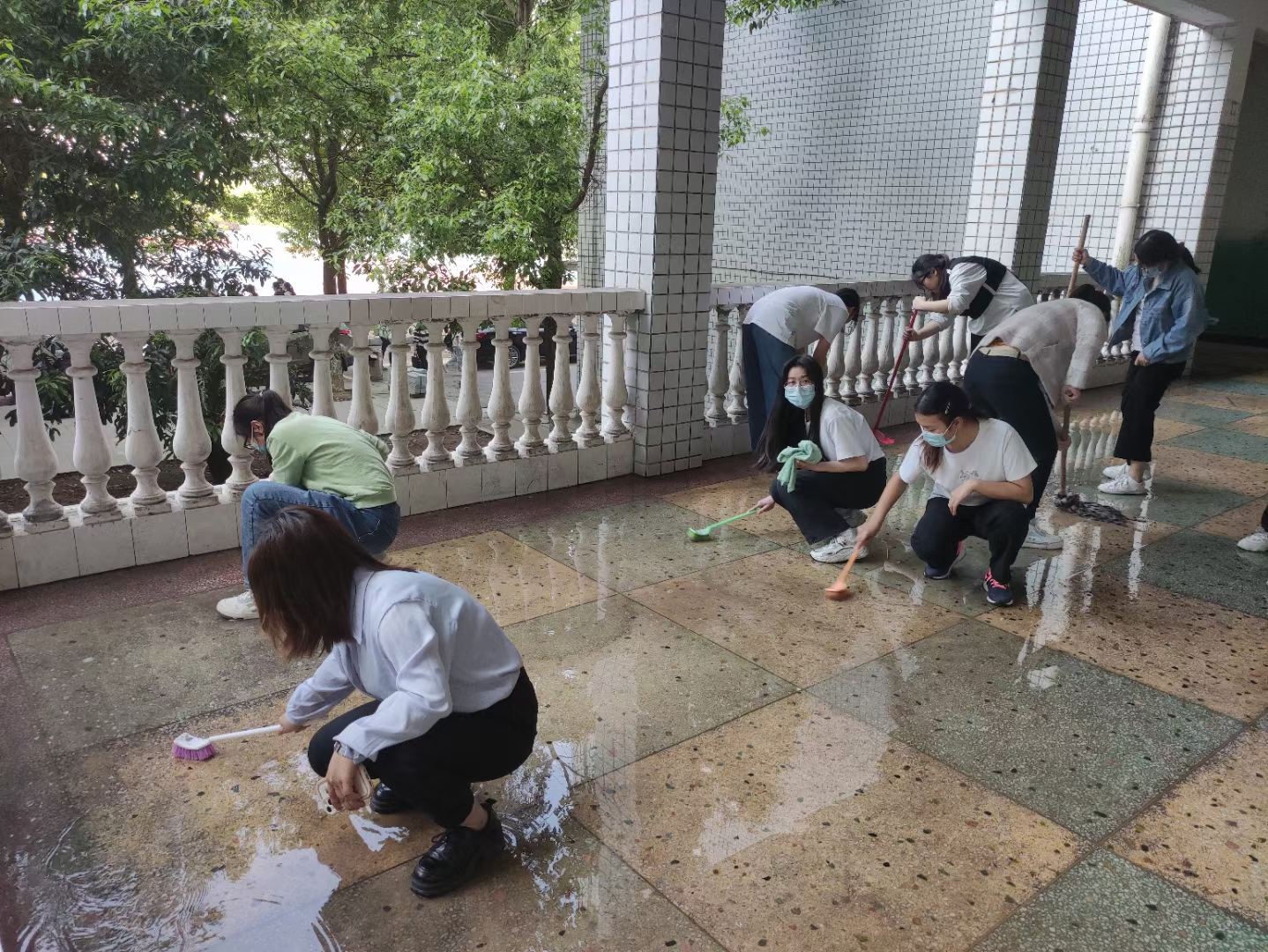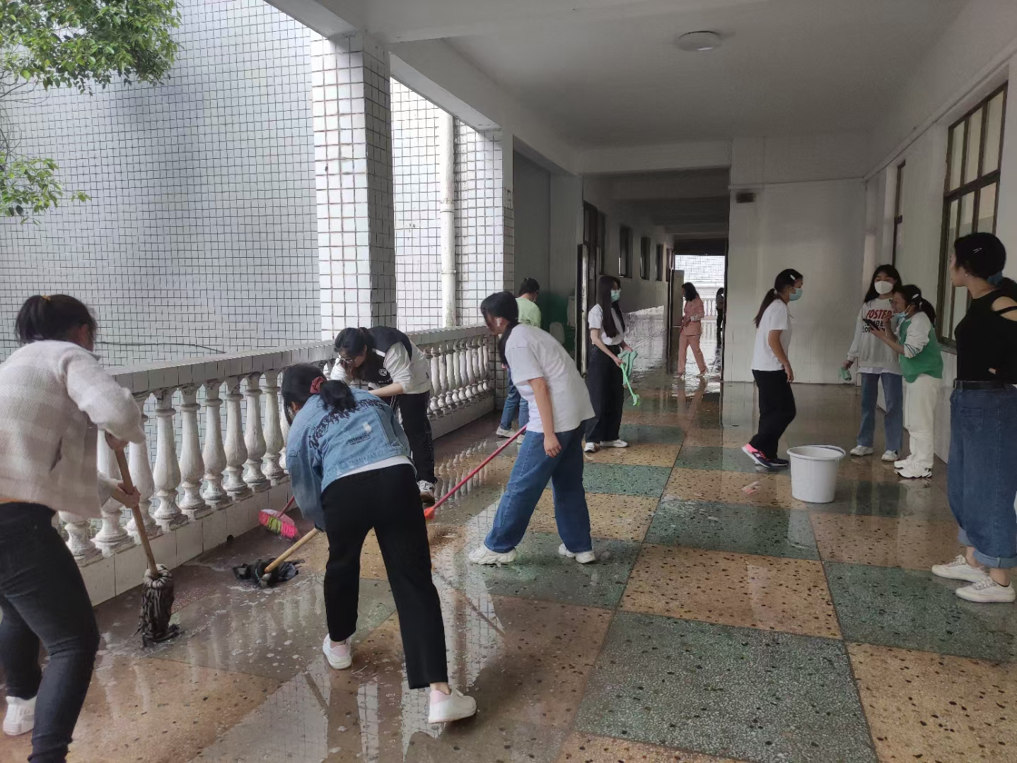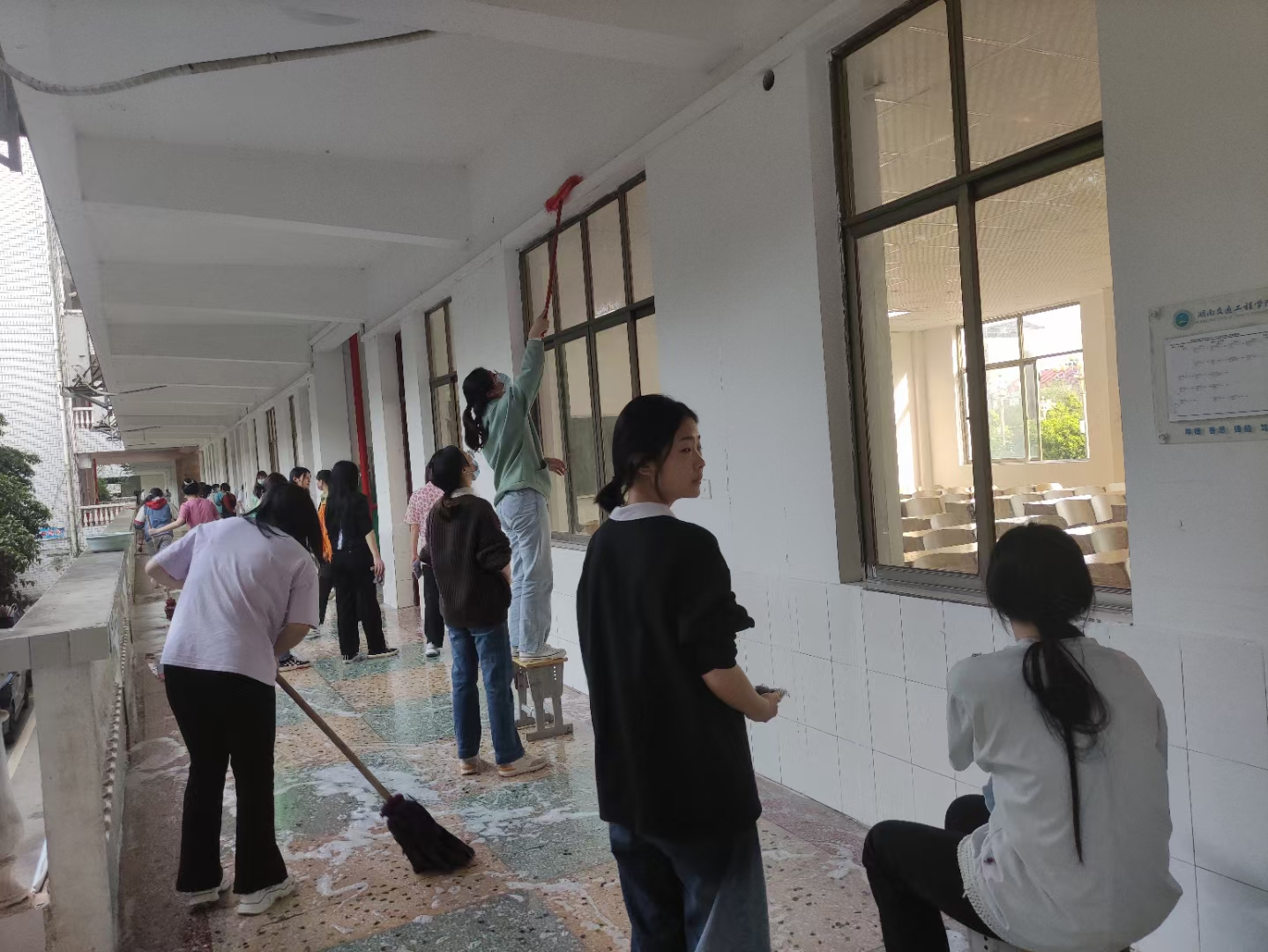 此次活动注重落实,确保教学楼全方位、无死角清洁。学院全体辅导员带队,各班级学生积极参与,相互协作,教学楼每个角落都有学生们辛勤劳动的身影。有的清扫教室的蜘蛛网,有的清除地面杂渍,有的冲洗走廊.....清扫后的教室桌椅摆放整齐,窗明几净,教学用具等物品摆放井然有序。