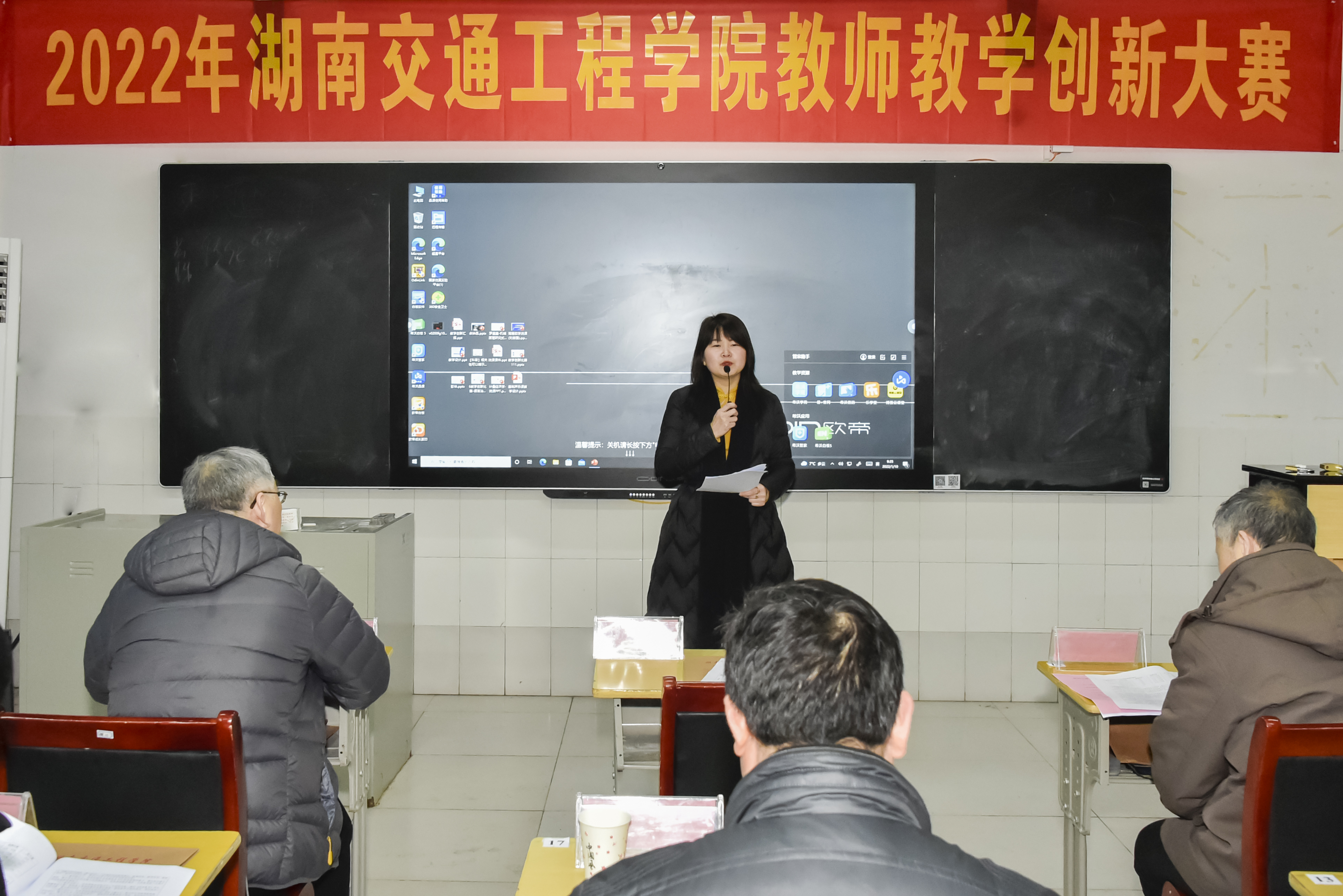 本网讯(记者 赵红深 通讯员 王海娥 摄影 李建华 )为落实立德树人根本任务,助力beat365课程思政和新工科、新医科、新文科建设,推动信息技术与教育教学融合创新发展,引导教师潜心教书育人,1月10日,学校2022年度教师教学创新大赛在实训大楼208室举行。副校长樊晓平教授、教务处处长曹中一教授、科技处处长冯良贵教授、交通运输工程学院院长罗迎社教授、督导室彭斌教授、电信学院副院长范双南教授、机电工程学院书记罗斐副教授到场观摩并担任评委。樊晓平教授致开赛词,党政办副主任霍志玮担任主持人。各二级学院(部)教师观摩了本次比赛。
