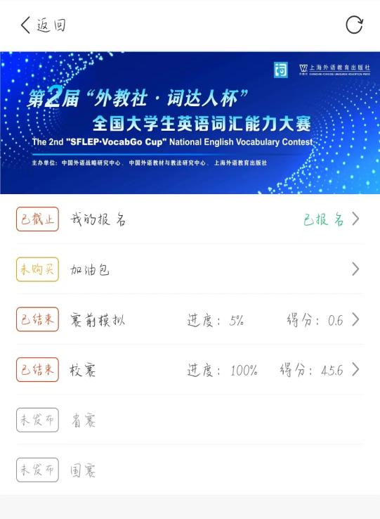 该比赛于2022年4月17日星期日下午14:00-15:00在线上举行,学生无需线下集中,各参赛选手只需打开手机“词达人”公众号即可参赛。届时系统将会严格监控各位考生。