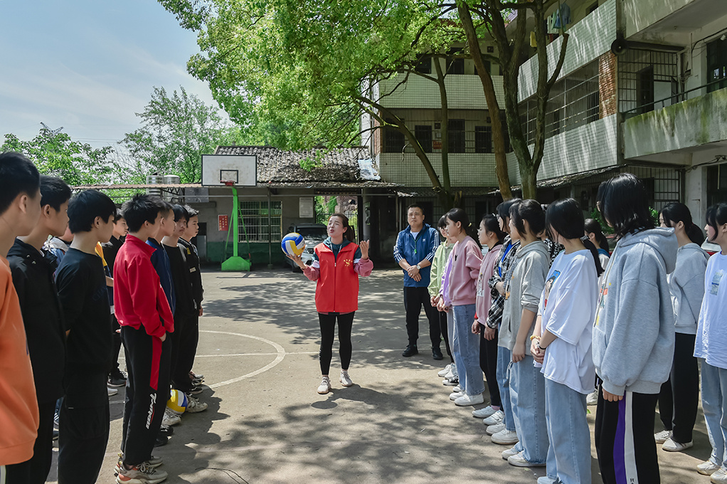 beat365唯一官方网站支教志愿者在给学生上排球课