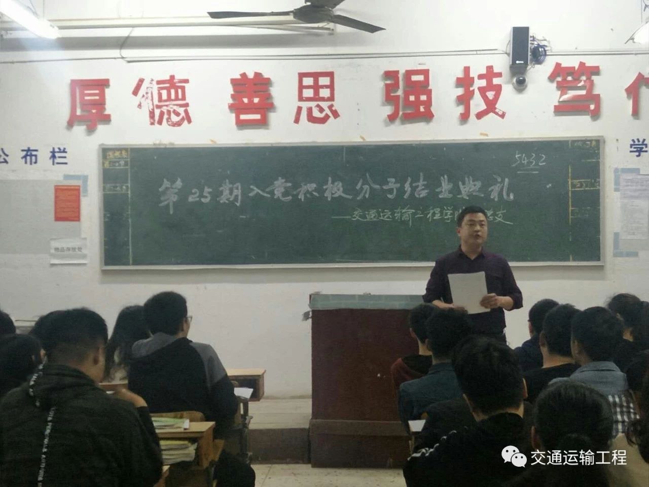 2018329日晚,交通运输工程学院党总支组织第25期入党积极分子结业典礼