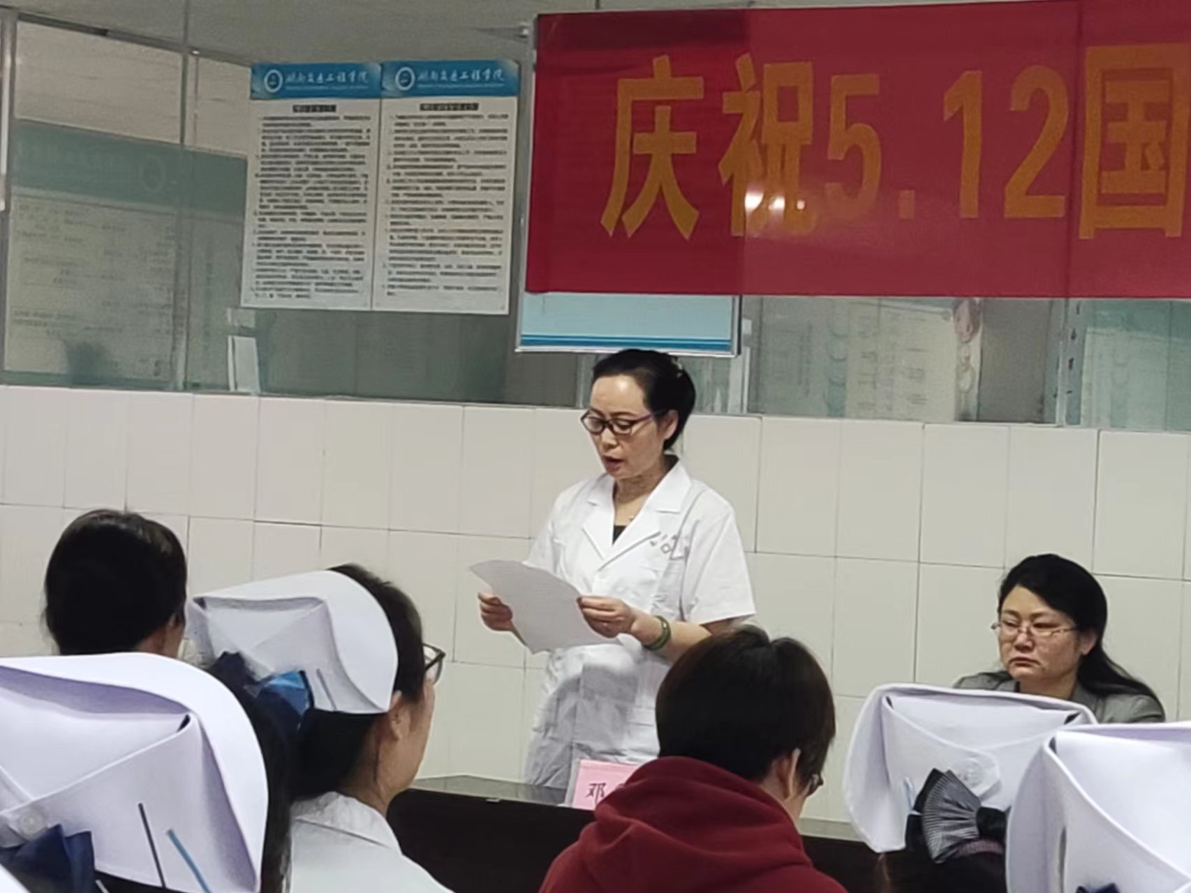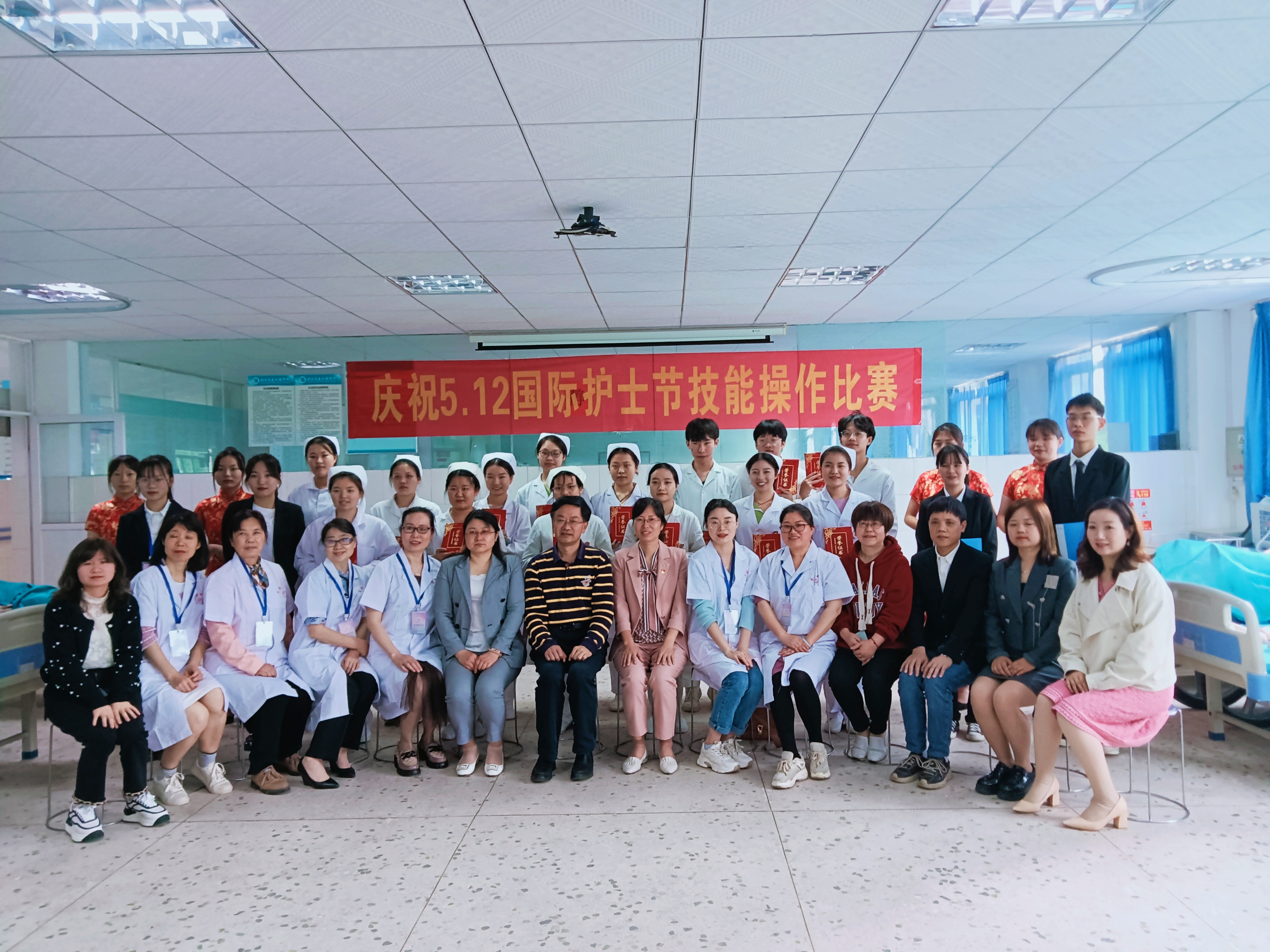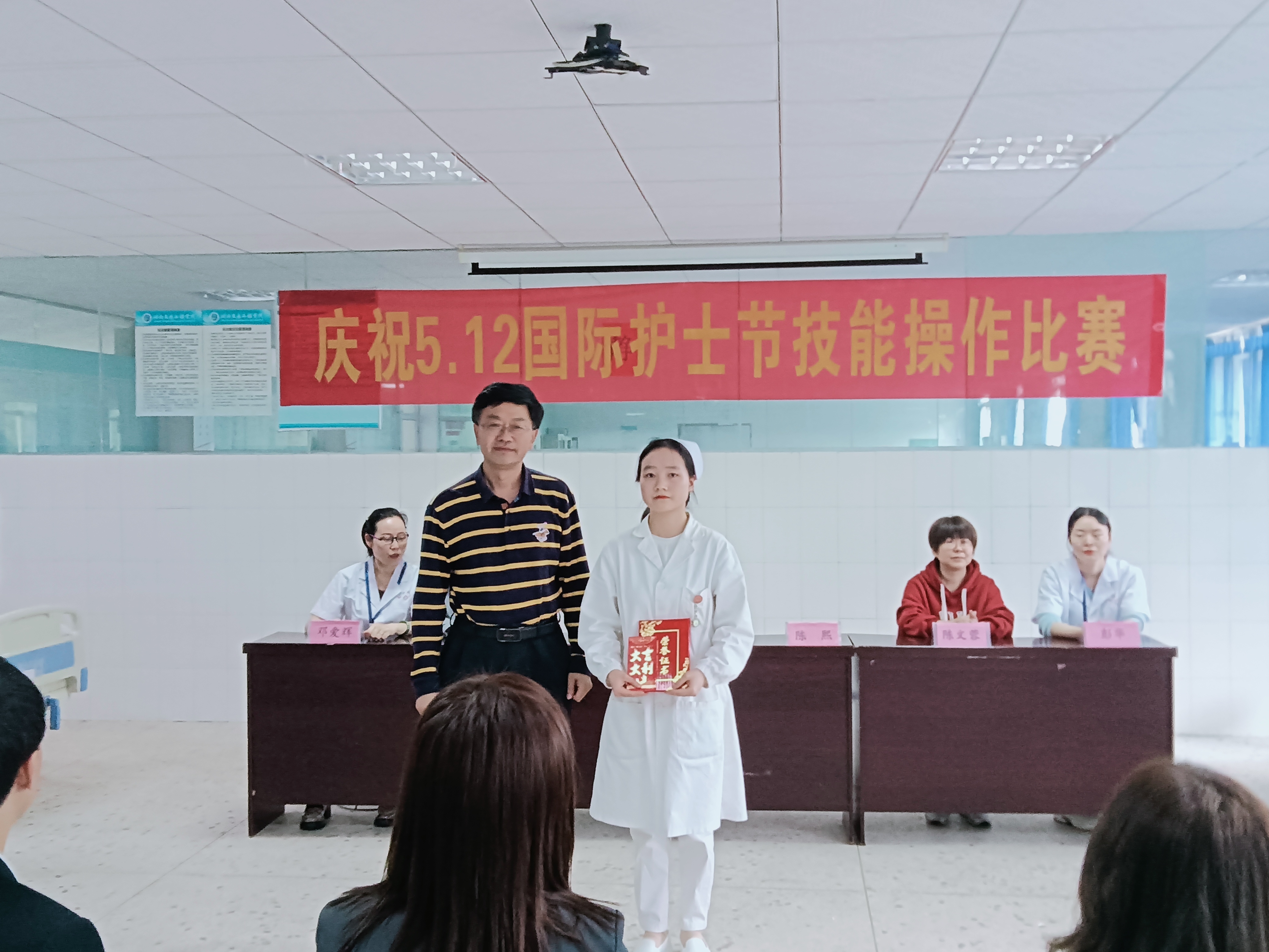 五月春归浓,繁花似锦。第111个国际护士节如约而至,为了弘扬南丁格尔无私奉献精神,加强护生们的专业能力,强化护理技能操作。在5月12日这个特殊的日子里,我院在实训楼三楼特举办护理技能操作大赛,莅临比赛的领导老师有护理学院院长陈熙,党总支书记邓丽,党总支副书记兼团总支书记肖桂香,学生干事老师陈文蓉,教务干事老师廖小立,护理操作技能大赛评委老师及全体辅导员老师,本次会议由李钰格和颜程主持