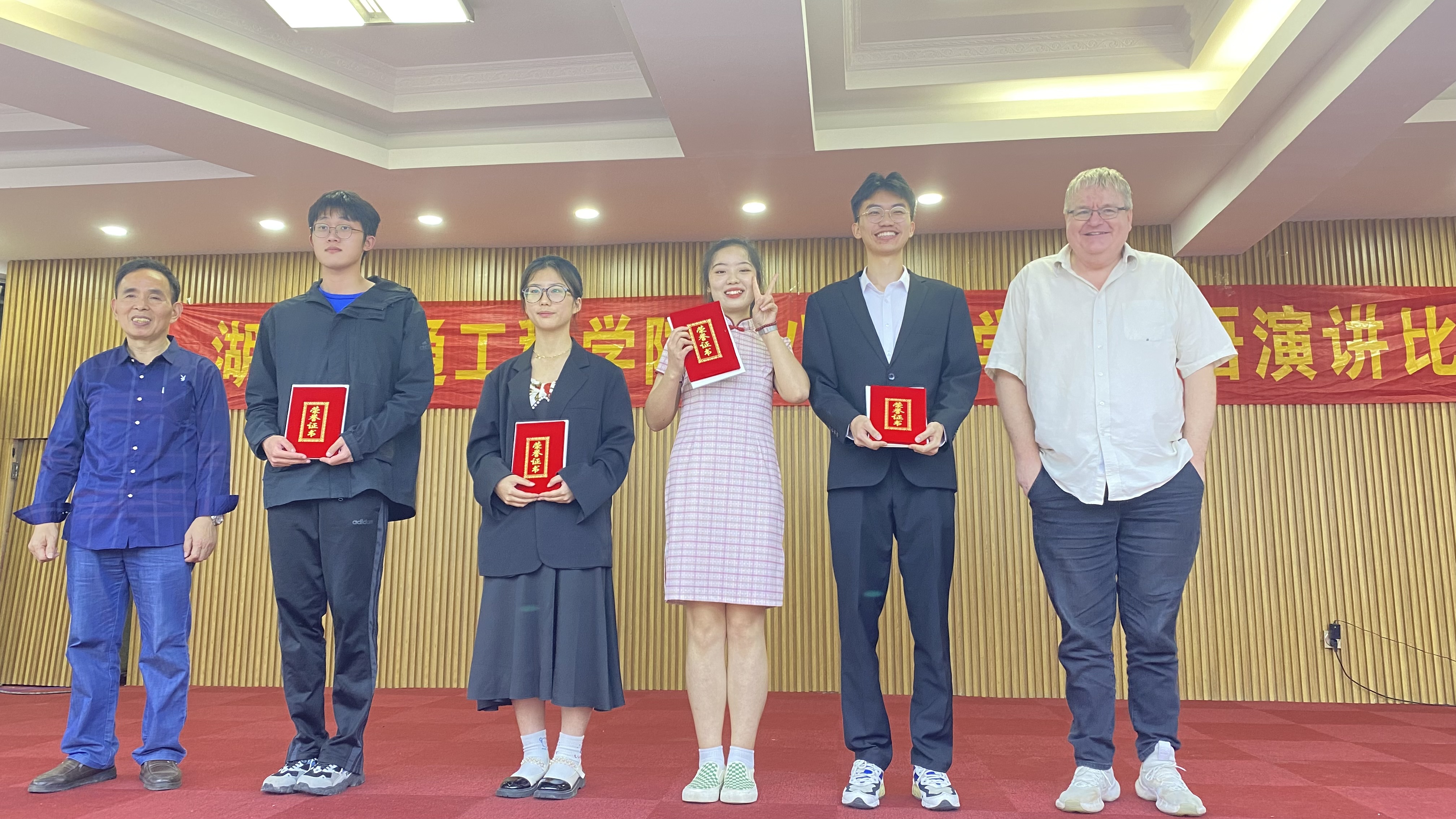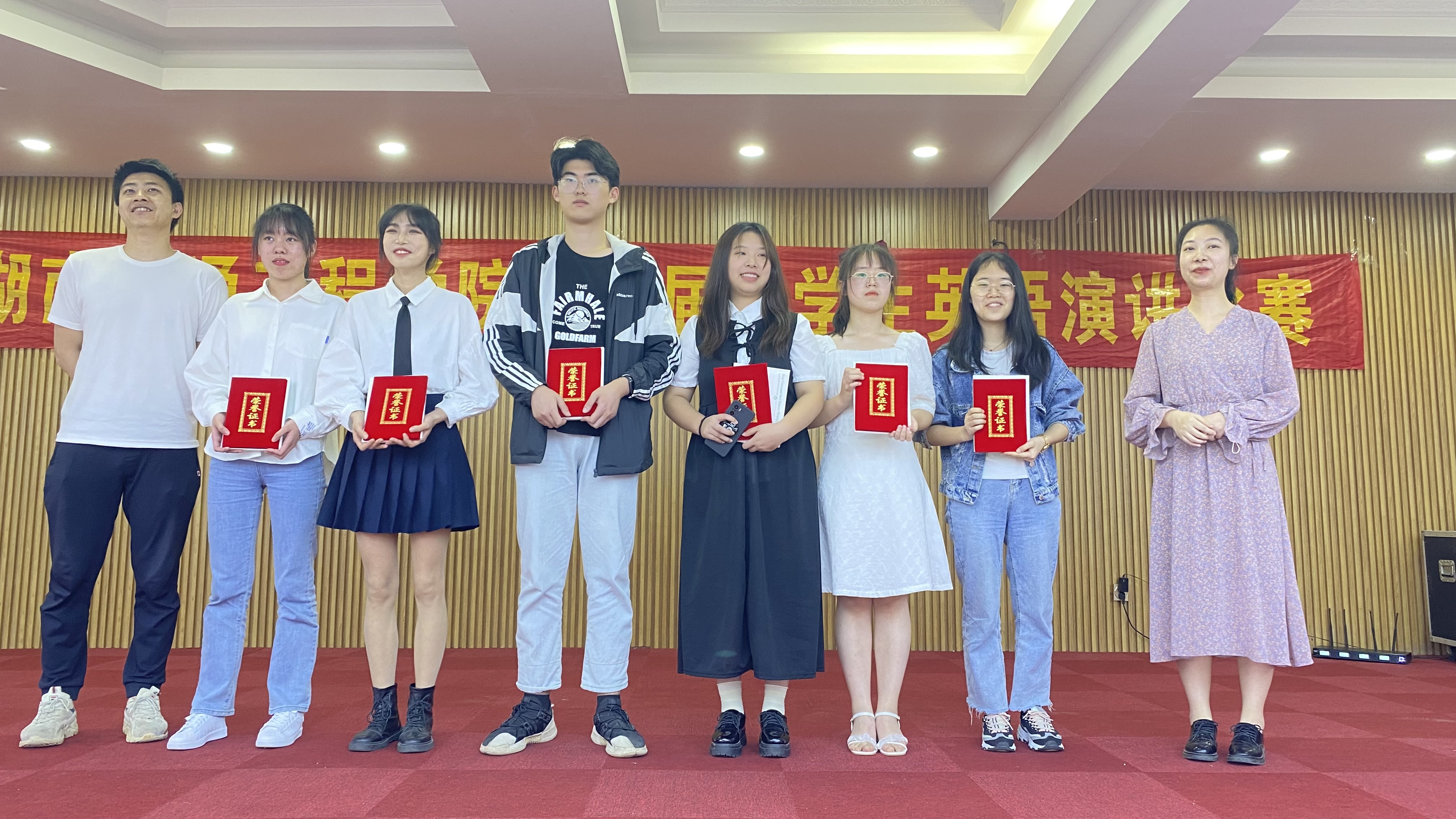 评委从演讲内容、语言表达、技巧运用三个方面进行评分,非英语专业组国贸本2101刘颖旎获一等奖;电气本2103罗婉婷、财管本2004夏禹凡、康复本2001余泓锦等3人获二等奖;土木本2003代玮辰、电信本2102熊海银、护理本2003曹丽远、护理本2002唐慧等4人获三等奖。英语专业组英语本2102舒小轩获一等奖;商英本2002赵湘获二等奖;商英本2001尹雨婷、英语本2004黄颖获等2人获三等奖。人文与艺术学院领导、教研室主任和外教老师为各位获奖选手颁奖。