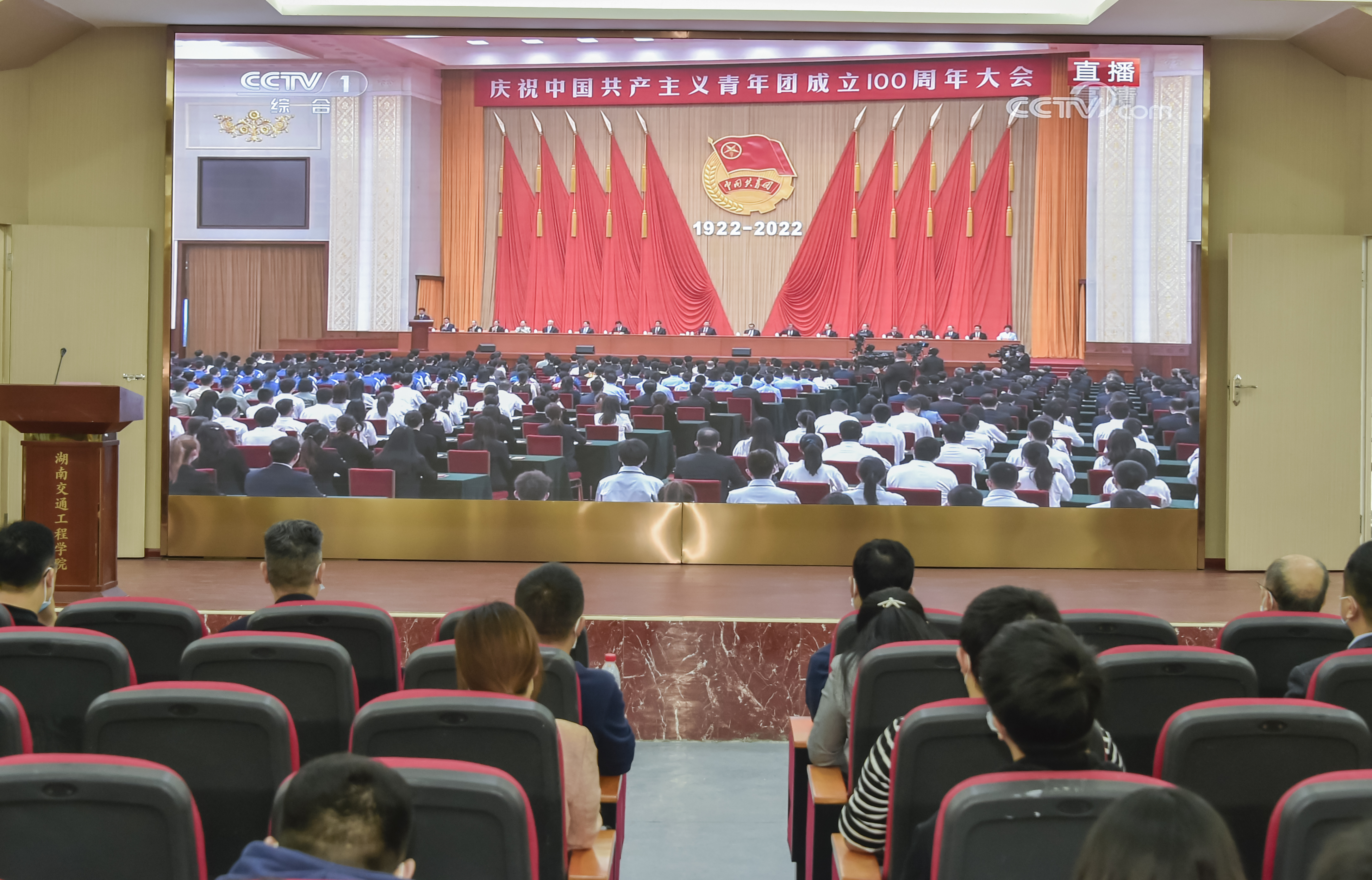 5月10日上午10时,庆祝中国共青团成立100周年大会在北京人民大会堂隆重举行。beat365组织广大团员青年、团干部集中收看大会盛况;各二级团总支、团支部采用集中观看和个人观看相结合的方式,共同庆祝中国共青团百年华诞。