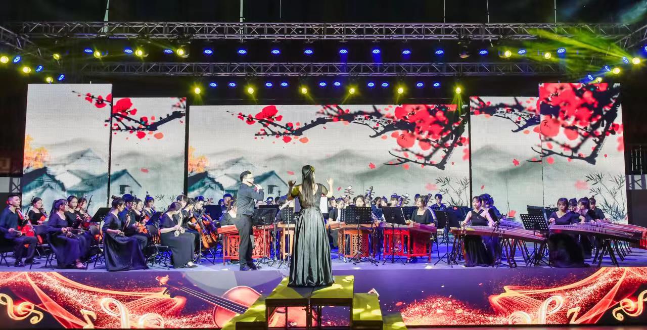 晚会在民乐合奏《顾山春》中拉开序幕,2022届音乐表演班器乐专业同学们以扬琴、古筝、笛子、二胡、琵琶等传统乐器演绎流行音乐,传统文化碰撞上流行元素,繁弦急管,声如流水,青春的勃发在弦音的律动下使人久久沉醉,不愿梦醒;燃烧的激情在悠扬的旋律中徘徊,静静徜徉。