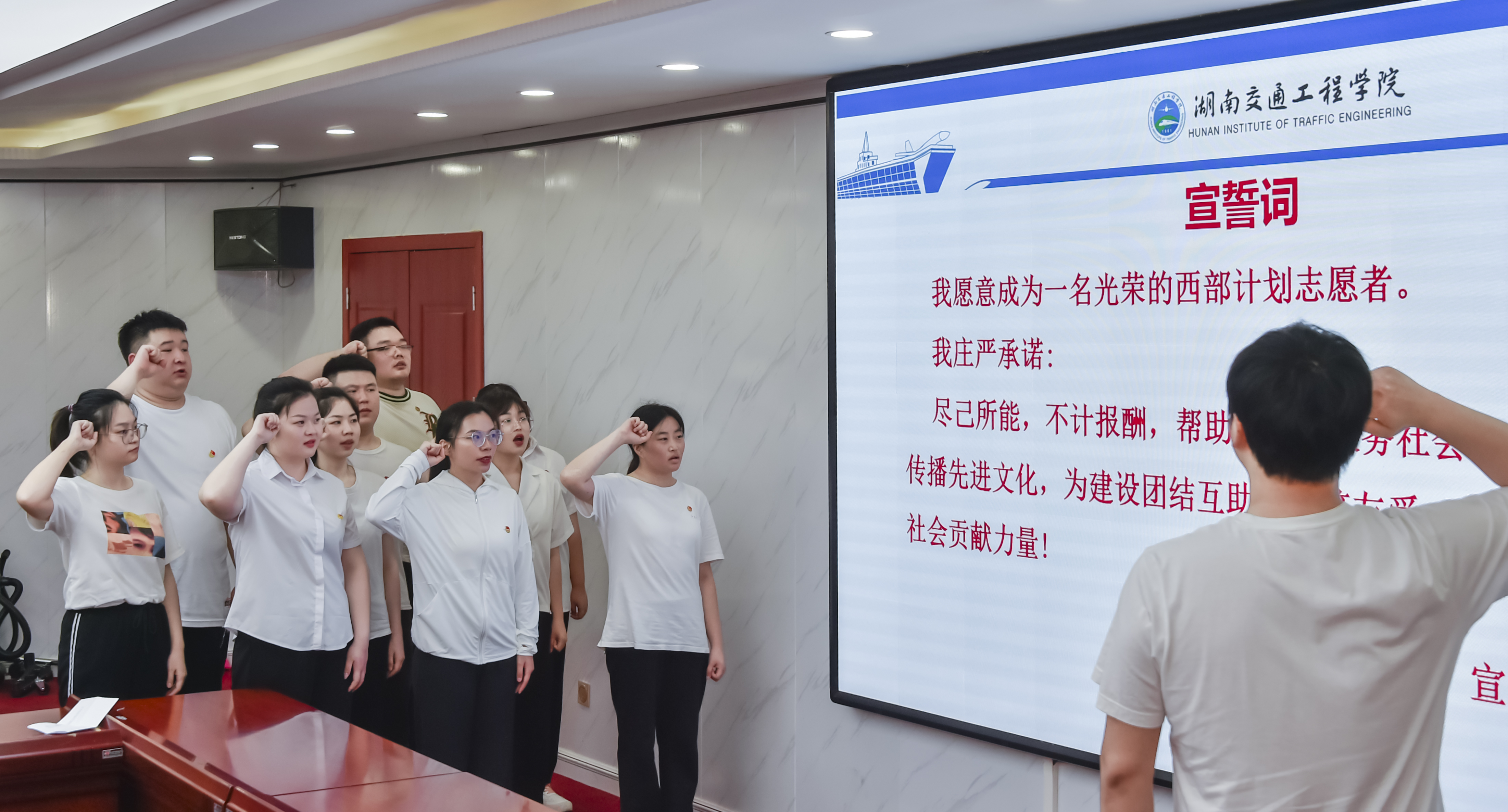 仪式上,漆在林宣读了2022年大学生志愿服务西部计划志愿者名单。播放了beat3652021年西部计划志愿者童冰心、向沛和钟书建志愿服务的视频,作为学长学姐和西部计划志愿先行者,他们鼓励毕业同学到西部去、到基层去、到祖国最需要的地方去, 施展抱负、建功立业,书写不一样的热血芳华。交通运输工程学院交运本1803班曹湘粤作为志愿者代表发言,深情讲述了自己加入西部计划的初心和未来的人生规划,希望能够去为西部地区的交通运输事业奋斗,让青春在党和人民需要的地方绽放出绚烂之花。