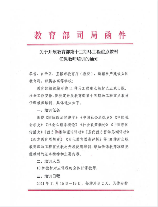 转发:关于展开教育部第十三期马工程重点教材任课教师培训的通知