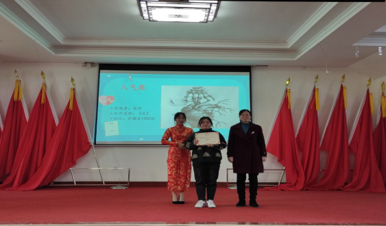 然后,一等奖获得者肖建聪代表获奖人员发言,他对在绘画过程中所遇到的困难及应对方法进行了分享,同时也向大家讲解了他作品中每处细节所代表的含义。他用作品告诉我们,绘画展现的不仅是线条美,还有心灵美。