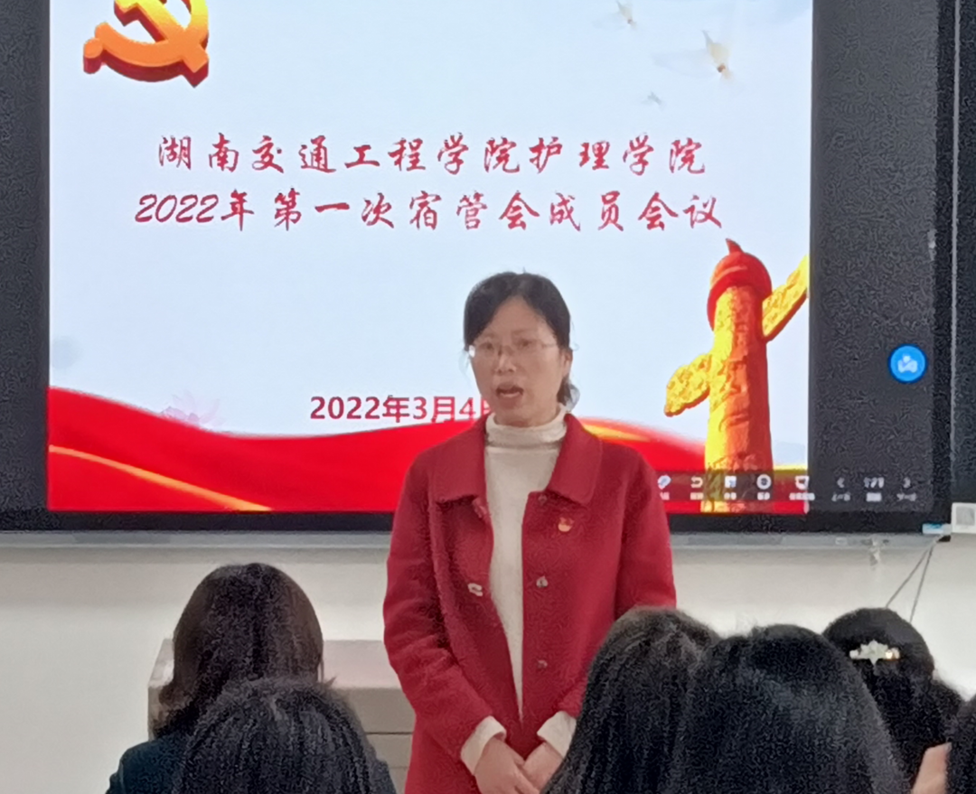 为了进一步加强学生宿舍管理,营造良好的宿舍氛围。护理学院于3月4日中午,在教楼201教室召开2022年第一次学生宿舍自治管理委员会成员会议。学院党总支书记邓丽、副书记肖桂香、十四栋学生社区党支部书记刘娣、十四栋、二十二栋学生党员和学生自治管理委员会代表参加会议。