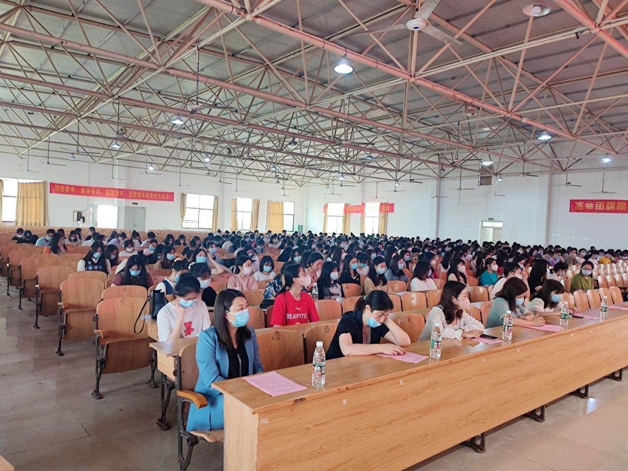 护理学院为加强学生实习管理,于2022年5月9日上午在学校大学生活动中心召开2022年临床实习动员大会。参加此次会议的有学校副校长樊晓平,教务处曹中一,护理学院院长陈熙、党总支书记邓丽、实习专干老师万灵辉,以及护理学院老师、辅导员、2023届全体毕业生。本次会议由肖桂香副书记主持。