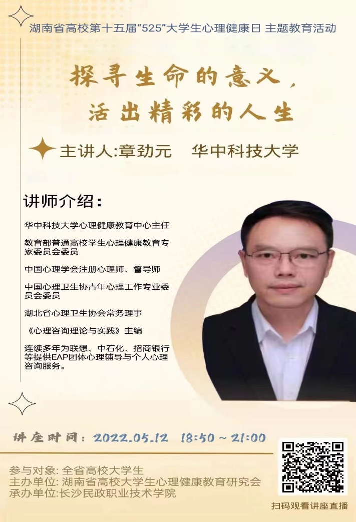 本次讲座引领学生从哲学的视角,探寻生命意义的状态、价值取向,探讨对生命的理解,引导学生将生命看作一个连续的整体,从心理学的视角了解生命意义与幸福、与生命困境的关系,以及对心理健康的影响,让学生能积极思考生命的意义。