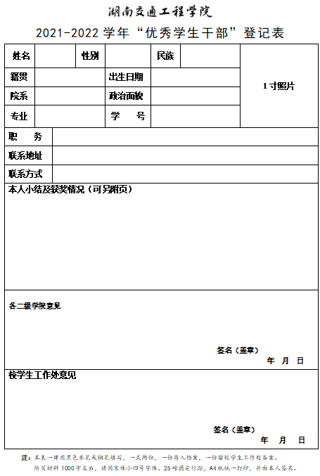 beat365唯一官方网站2021-2022学年“优秀学生干部”登记表