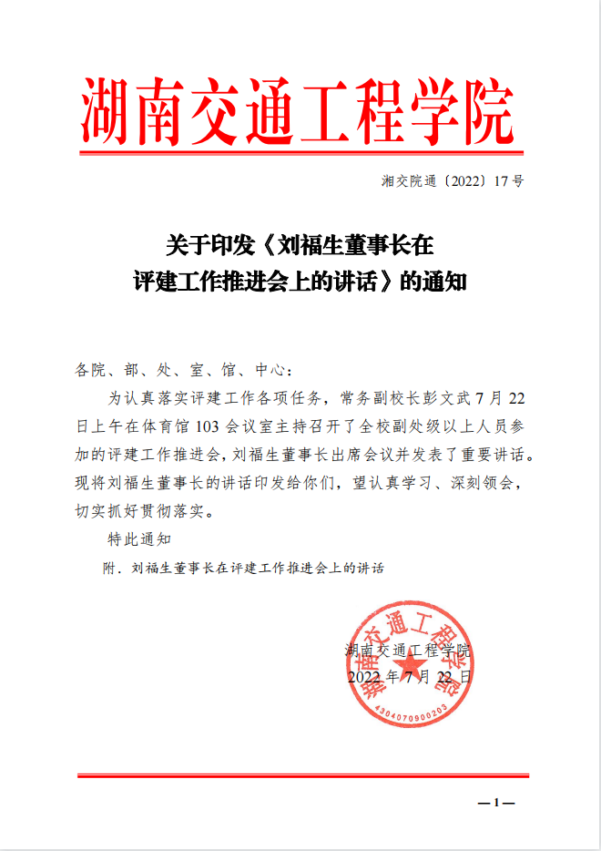 关于印发《刘福生董事长在评建工作推进会上的讲话》的通知