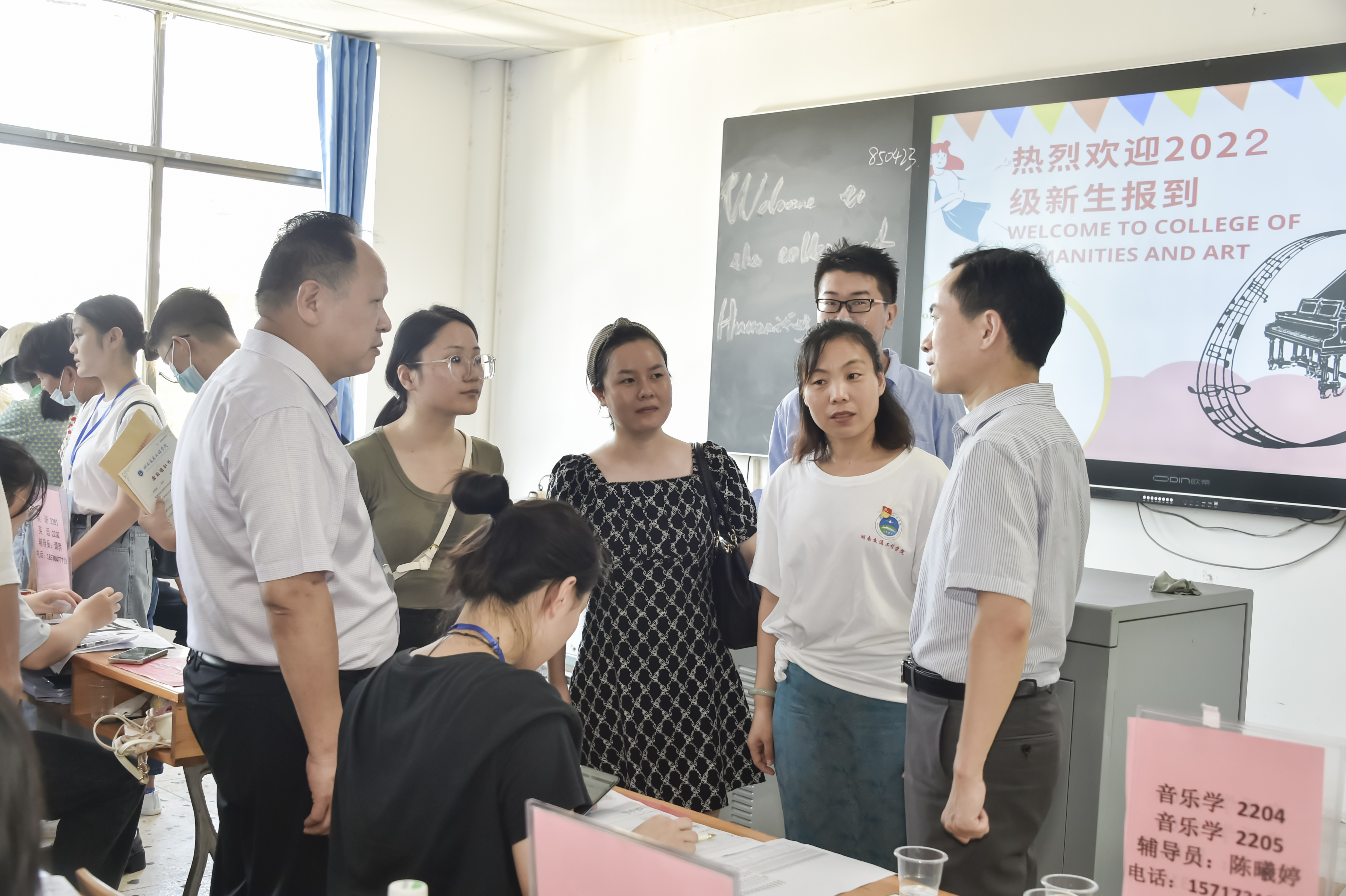 在毛泽东铜像文化广场,刘福生检查了迎新布展、志愿服务等有关工作;在图书馆和第一实验实训楼,彭文武检查了图书资料和实验设备情况;在学生宿舍,董晔卉一栋一栋地检查了生活设施等情况。校领导均亲切看望了来校报到的新生,详细询问了到校后的情况,勉励同学们主动转换角色,尽快适应大学生活,珍惜学校为大家提供的良好学习生活环境,发愤图强,成才报国。