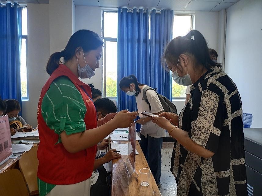 全体党员提前到达迎新现场,引导来校报到的2022级新生办理报到手续,解答疑惑、维护现场秩序、解决新生实际困难等,同时也对新生进行关心和慰问并要求同学们做好自我防护。
