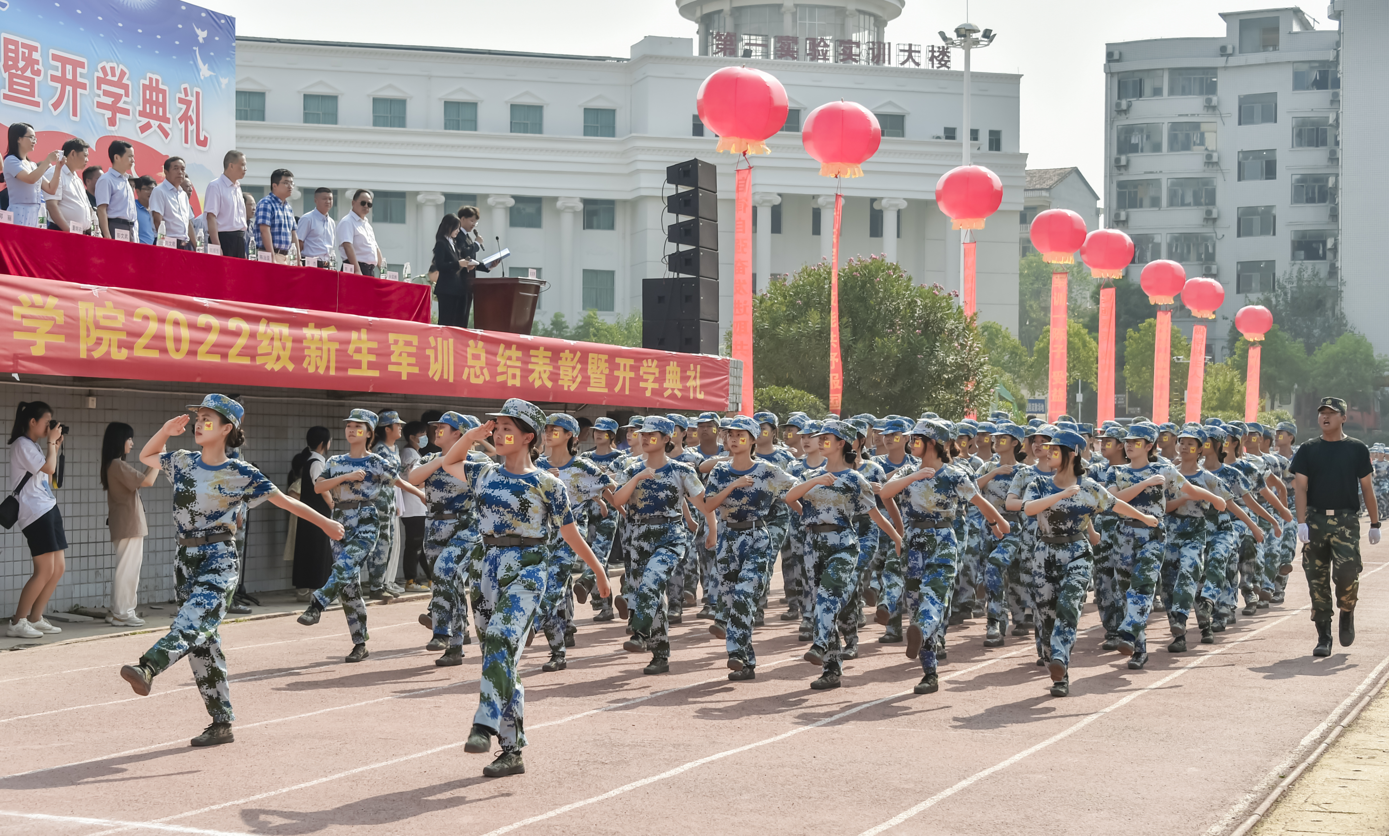 步履铿锵震乾坤,斗志昂扬青春色〡学校隆重举行2022级新生军训成果汇报表彰大会暨开学典礼