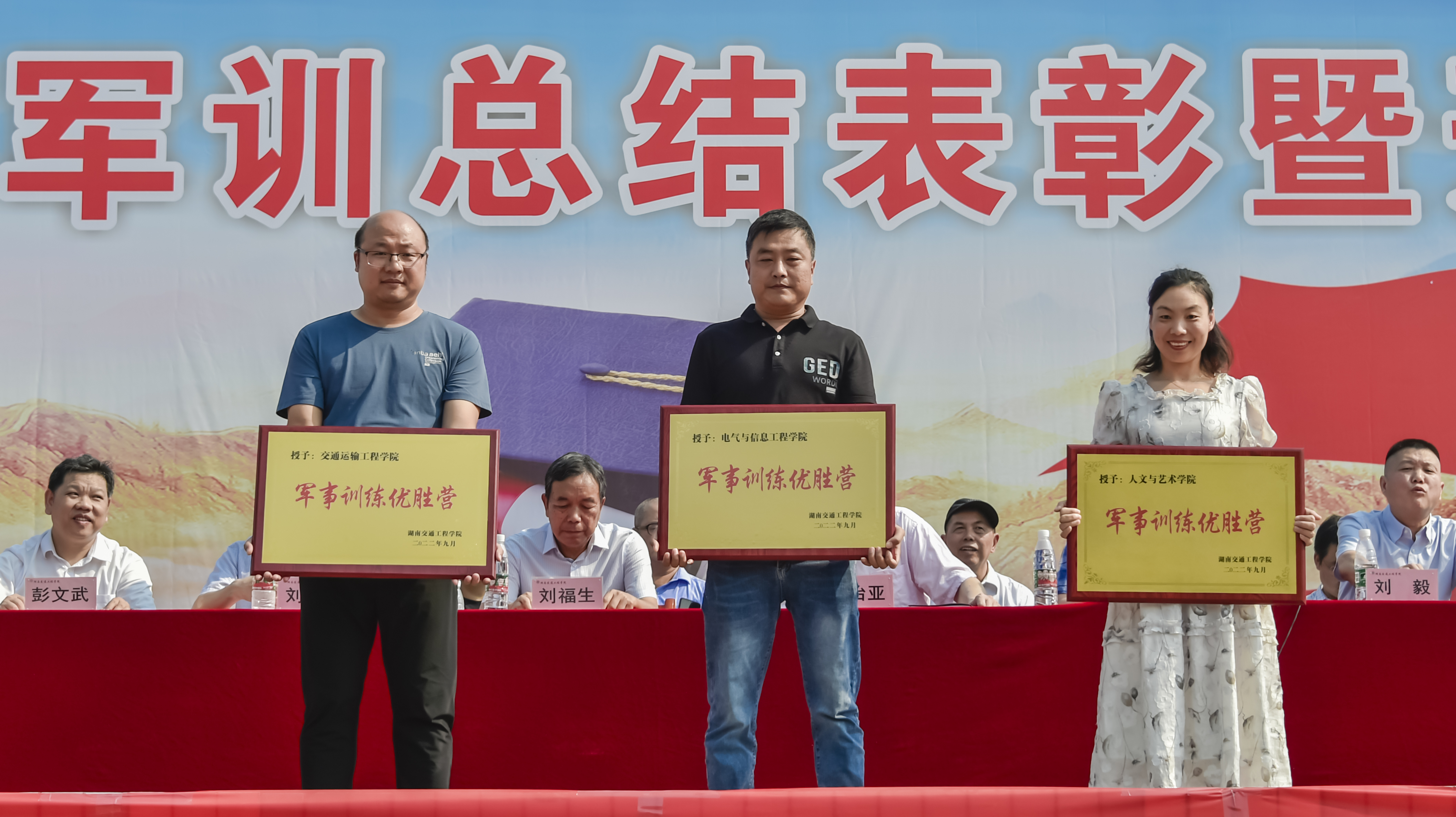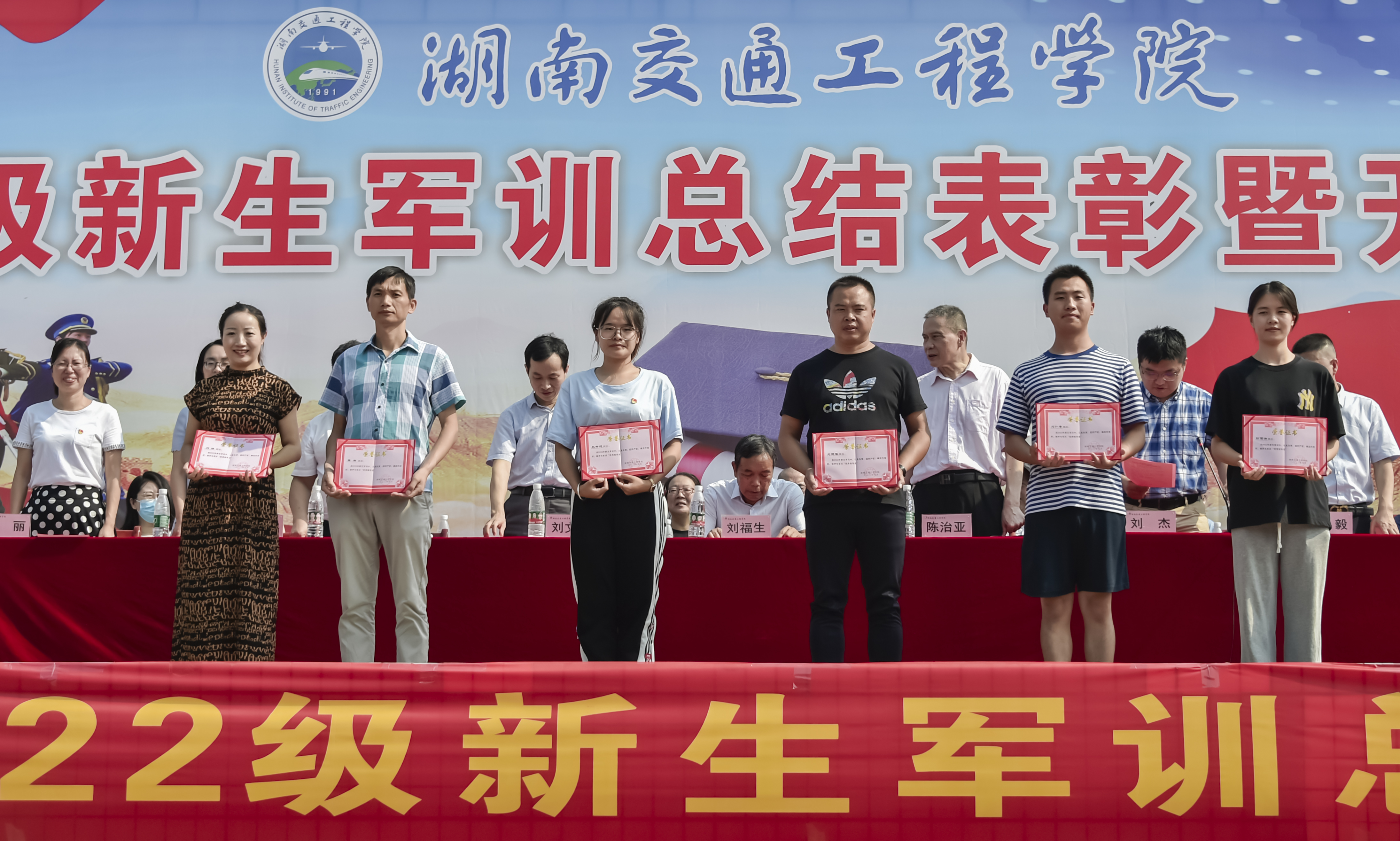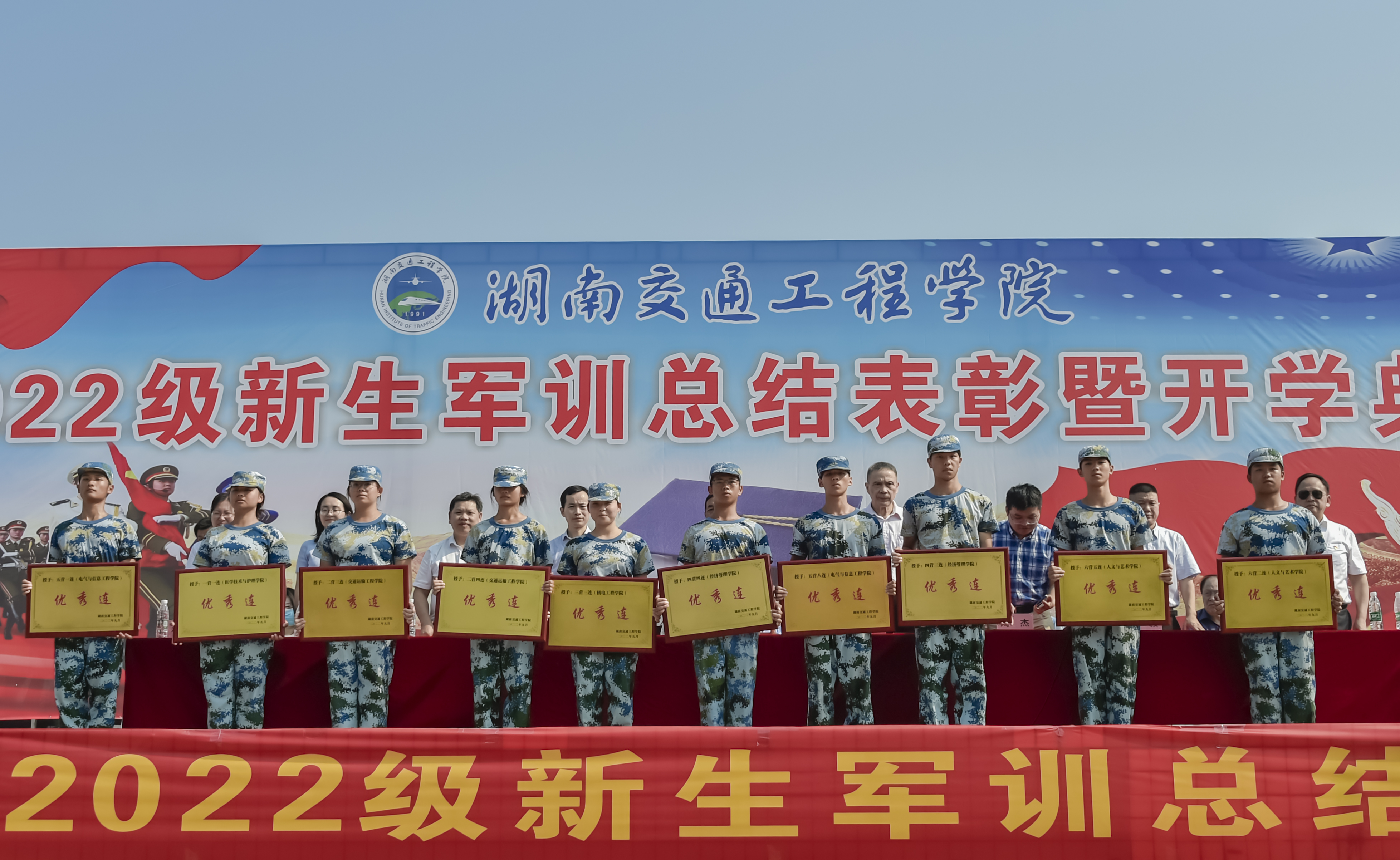 此次军训涌现出一批优秀学员和优秀教官,余孟辉宣读了“关于表彰2022年新生军训先进集体和优秀学员的决定”。授予四营为2022年军训先进营,授予一营一连等10个连为2022年军训先进集体;授予刘欣等14位教官为2022年军训优秀教官;授予何文华同志为2022年军训优秀教导员;授予刘娣等6位同志为2022年军训优秀指导员;授予许文强等194位同学为2022年军训标兵。