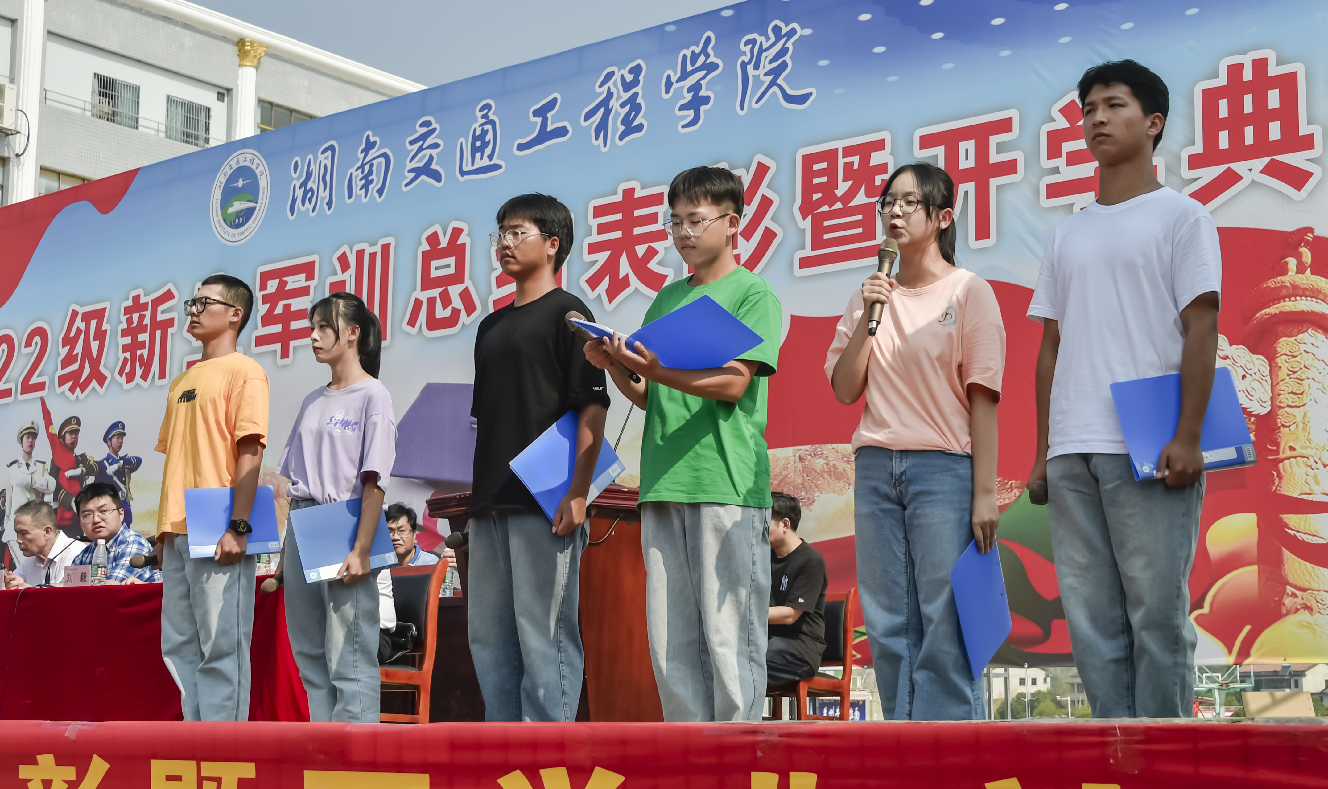6个2022级新生代表全体新生在典礼上发言。陈丹临为医学技术与护理学院代言,涂有明为经济管理学院代言,易瑜源为机电工程学院代言,舒畅为人文与艺术学院代言,刘锦轩为交通运输工程学院代言,杨文才为电气与信息工程学院代言。新的学期开启新的希望,新的空白承载新的梦想。他们倡导同学们从现在起步,养成良好的生活习惯,掌握良好的学习方法,培养良好的实践能力;用青春诠释自己的誓言,用汗水创造未来四年的辉煌。