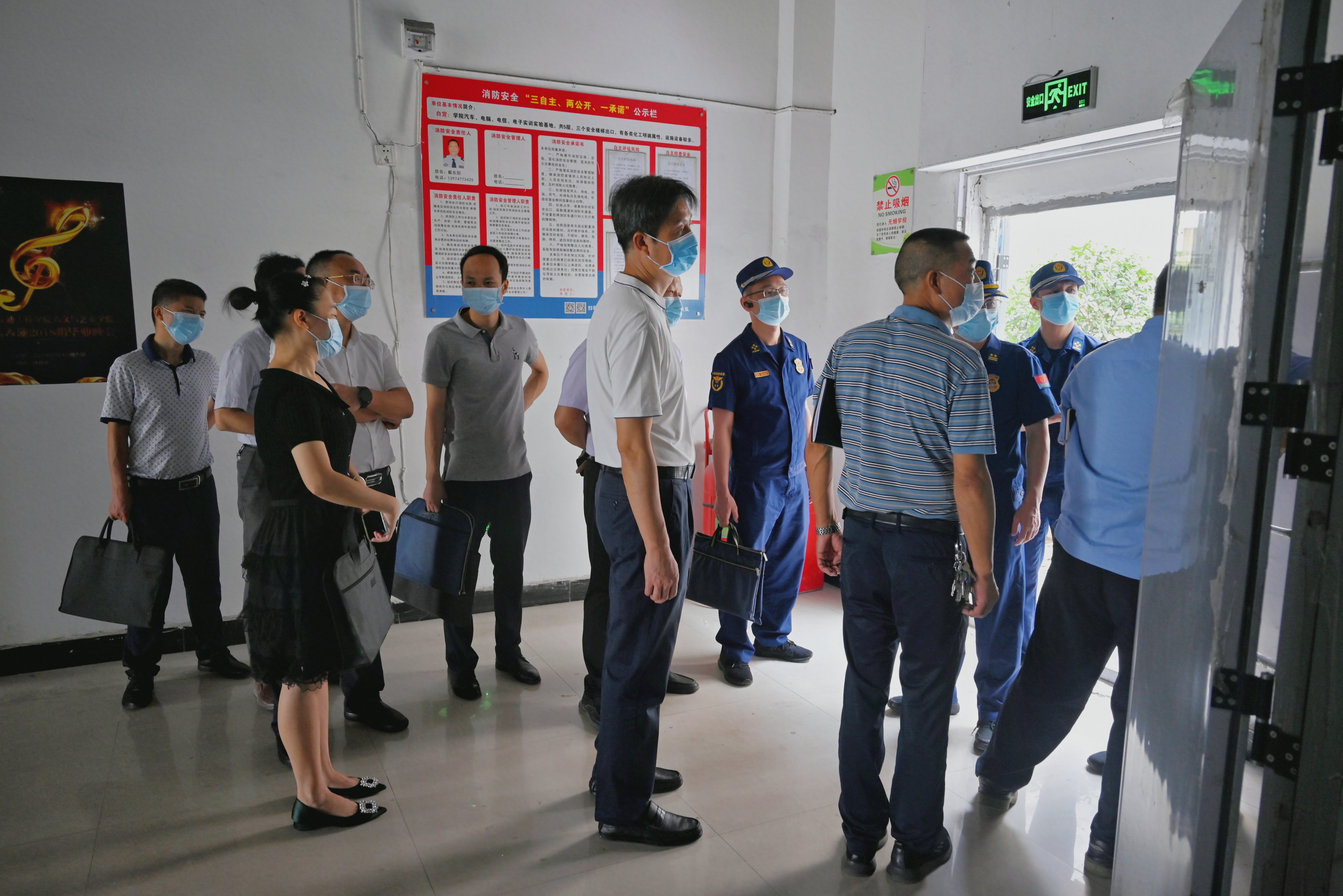 谢宏一行先后查看了学校图书馆、学生食堂、学生公寓、第一实验实训大楼,详细询问了解了消防安全主体责任落实和消防安全管理工作开展情况,实地查看了消防车通道、安全出口、疏散通道、消防器材配备、消防人员值班等情况,翻阅了日常消防安全巡查记录、火灾疏散预案等相关资料,随机抽查了工作人员对消防安全常识和应急处置程序的熟悉程度,现场测试了消火栓水压,并就进一步完善消防安全管理规范,提出了具体要求和指导意见。谢宏还现场查看了艺术馆的建设情况;在走访检查过程中,他还对校园环境和学生安全管理提出指导意见。