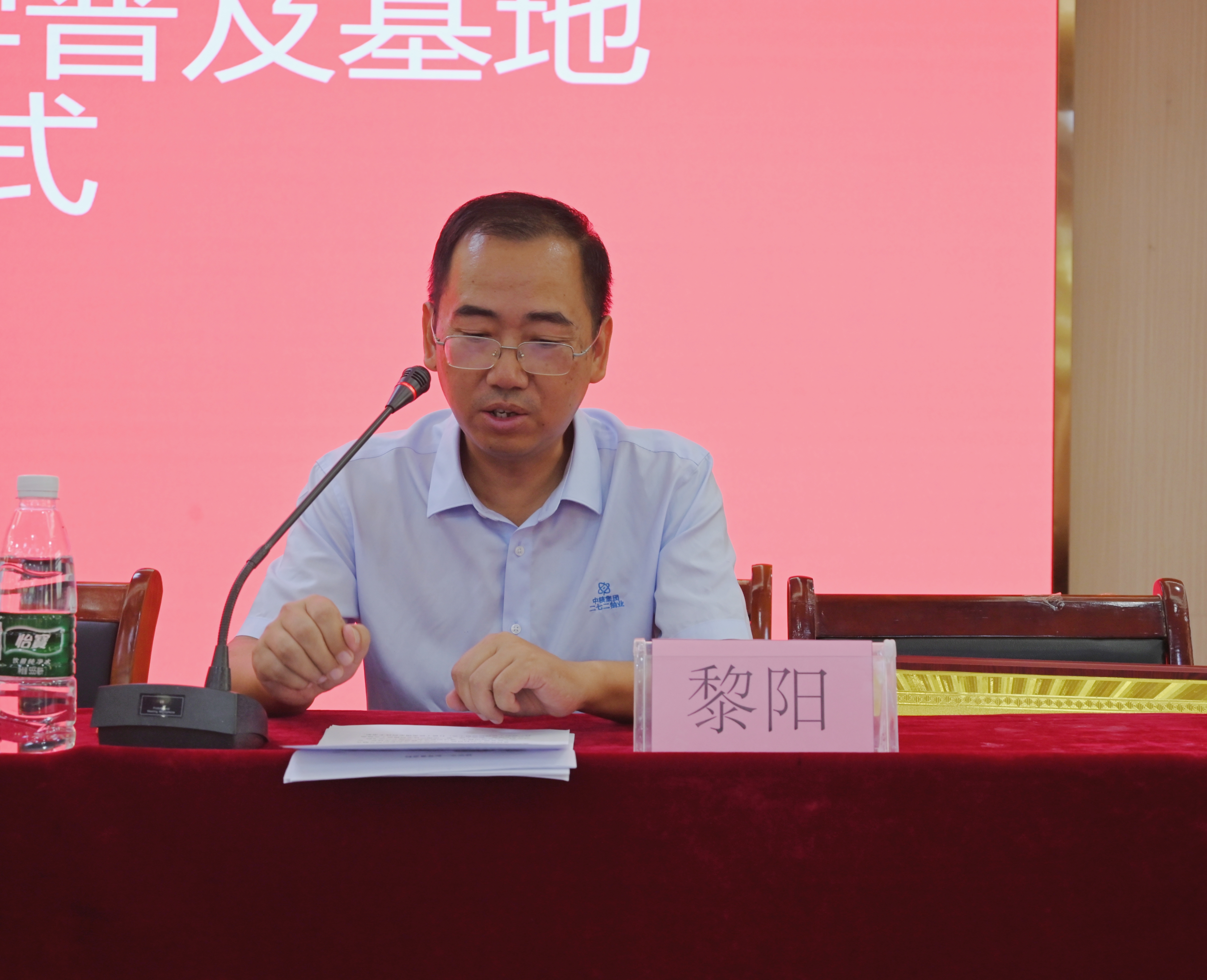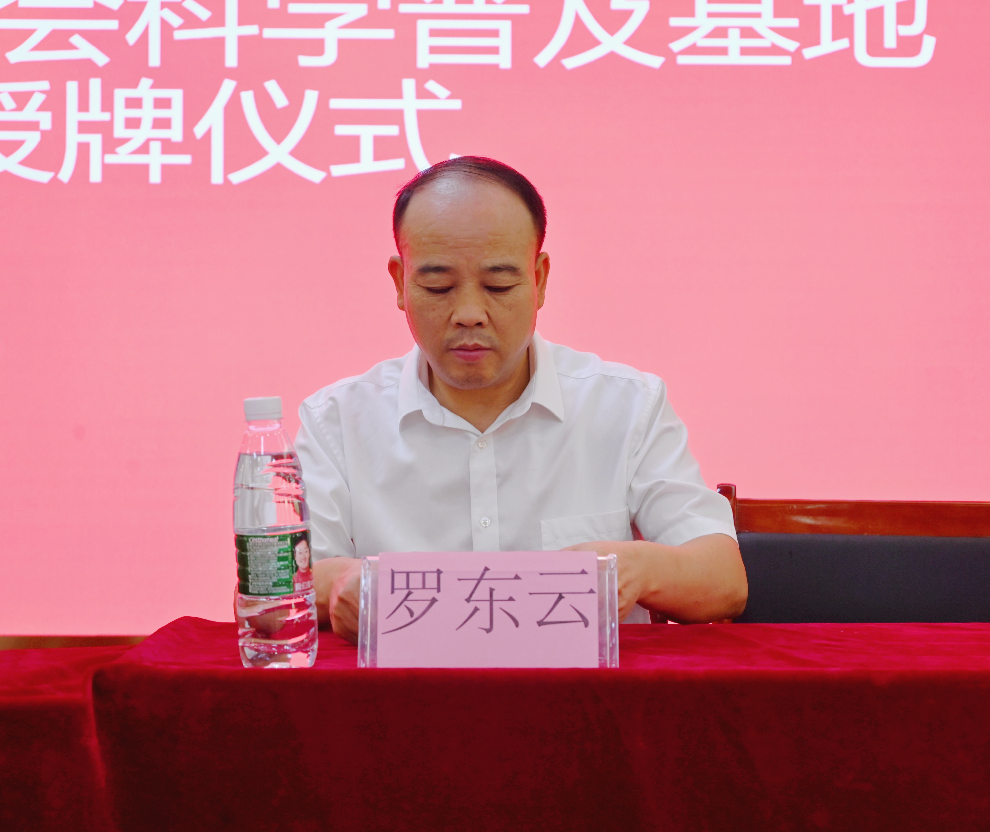 罗东云为基地建设单位授牌;beat365科技处副处长、科普基地负责人 和基地合作建设单位负责人黎阳接牌。
