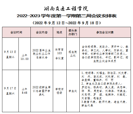 beat365唯一官方网站2022-2023学年度第一学期第一周会议安排表